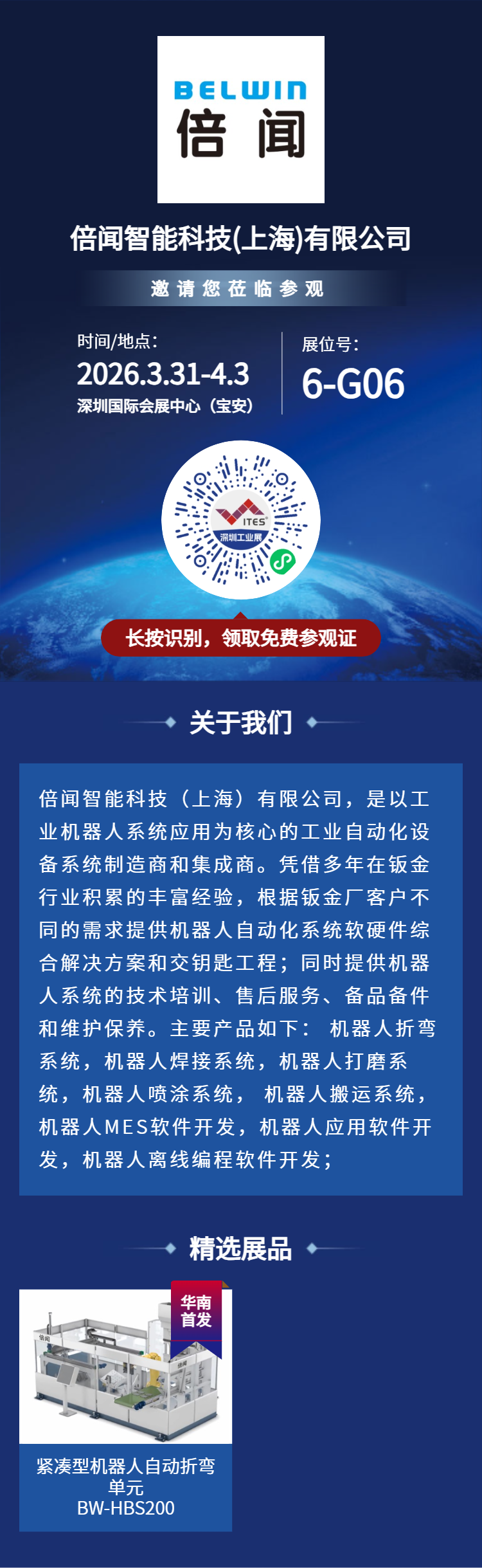 倍闻智能科技(上海)有限公司邀请您参加ITES工业展